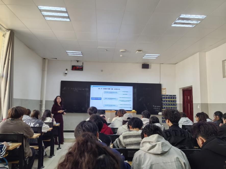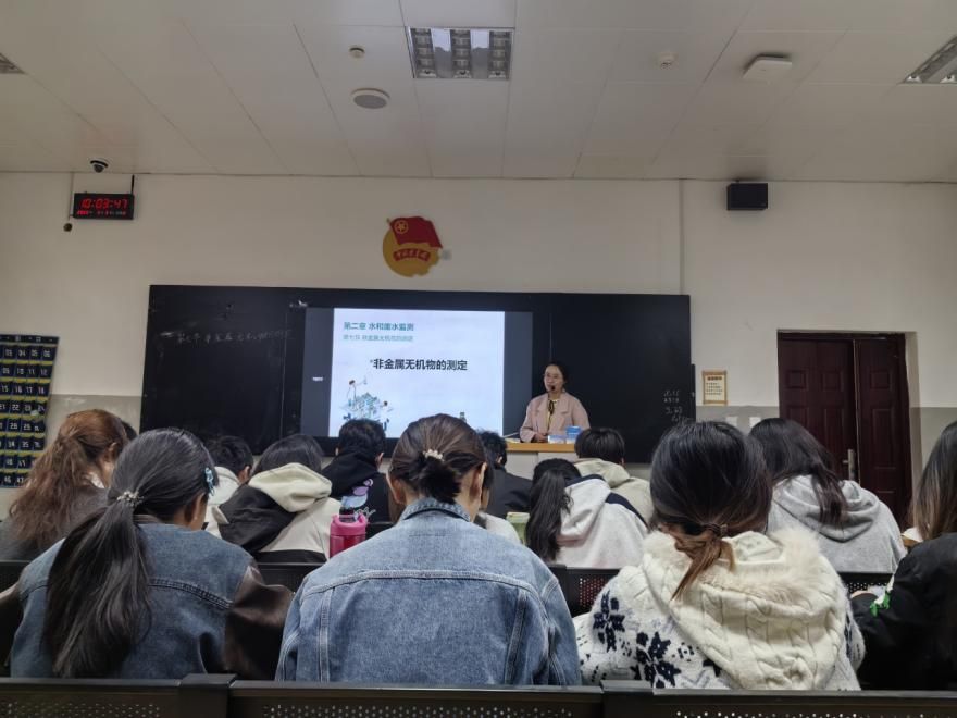 教学中,裴老师以知识、能力、素质三维目标为导向,系统讲授水体酸度、碱度、溶解氧、氰化物、氟化物、含氮化合物等指标的测定原理与方法,重点拆解碘量法测溶解氧、离子色谱法测氟化物等核心知识点。课堂采用案例式、线上线下混合式、学导式教学方法,通过课前测试摸底学情、课中提问互动激发思考、小组讨论分析溶解氧影响因素,实现理论与实践深度结合。同时融入“绿水青山就是金山银山”课程思政元素,结合水体富营养化案例,引导学生树立环境保护意识。