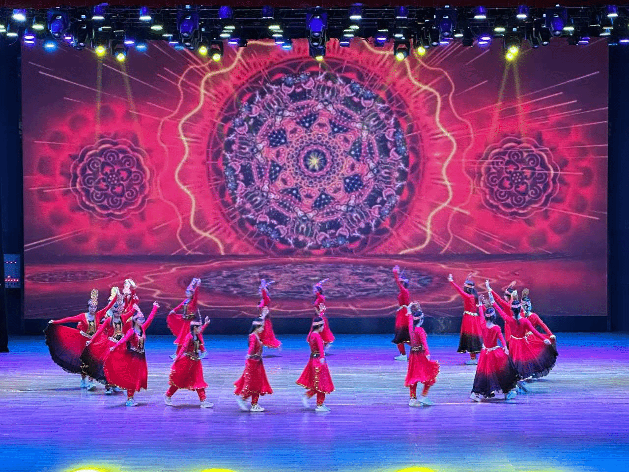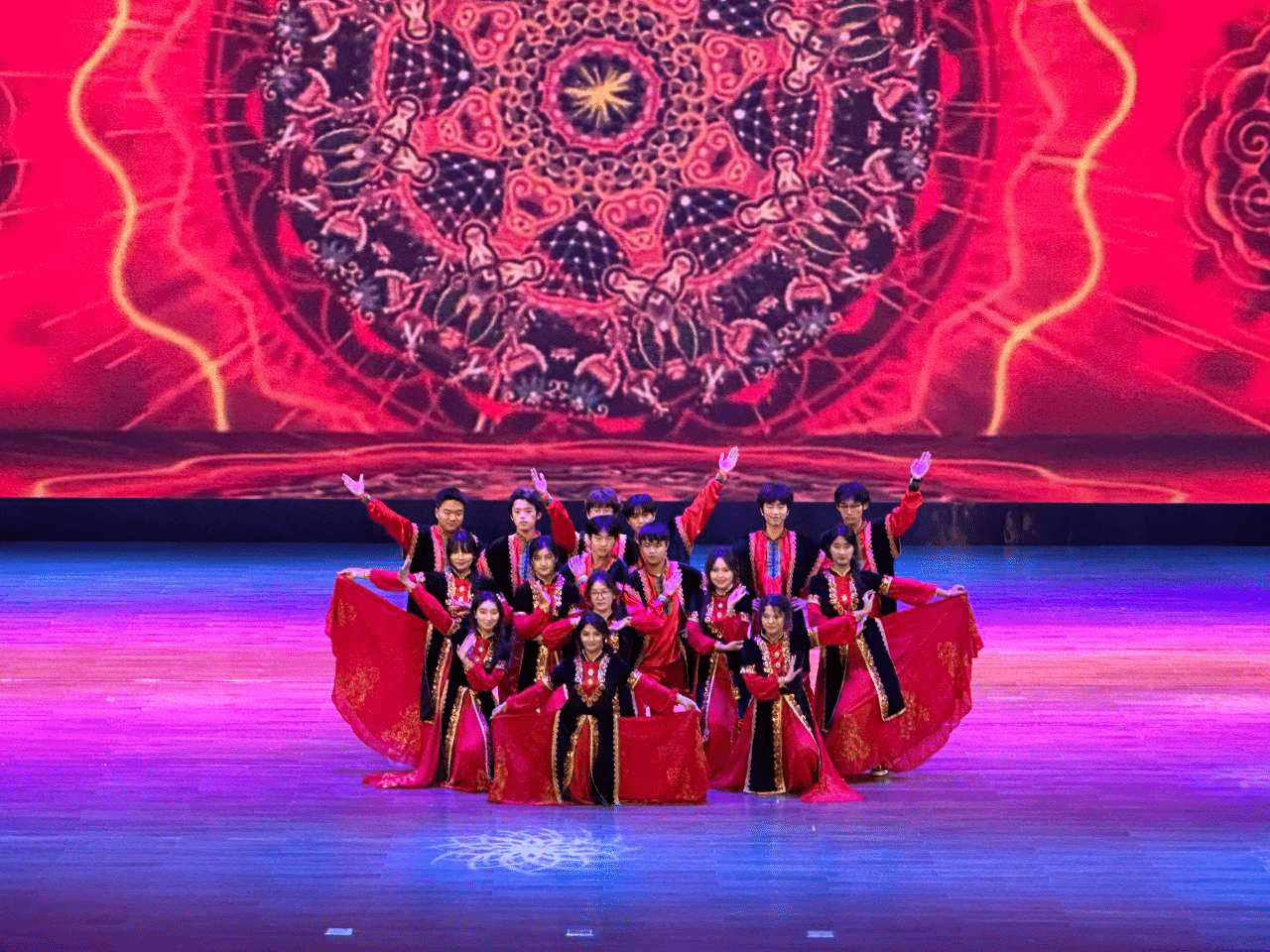 学院团委副书记罗霞以及辅导员出席本次活动并担任评委。比赛现场,气氛热烈非凡。舞台上,灯光璀璨,如同繁星洒落,为舞者们营造出梦幻般的氛围。同学们精心准备的服装五彩斑斓,每一针每一线都绣着对新疆舞的热爱,那绚丽的色彩随着舞者的动作摇曳生姿,仿佛一幅幅流动的画卷。
