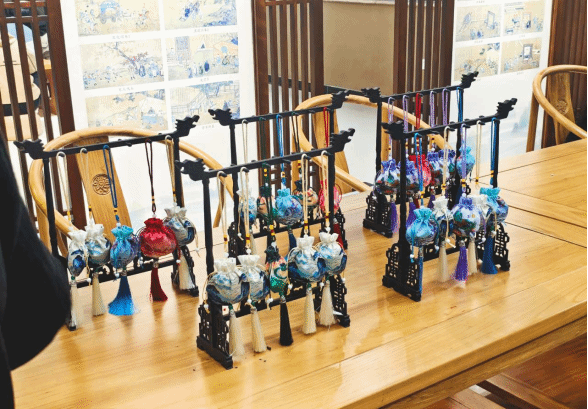 参与者们热情高涨,在指导下纷纷动手。从挑选心仪的香囊样式开始,大家全神贯注地填充香料,书写祝福语,此次活动不仅让大家体验到传统香囊制作的乐趣,感受手工艺术的魅力,还将美好的祝福缝进香囊里。